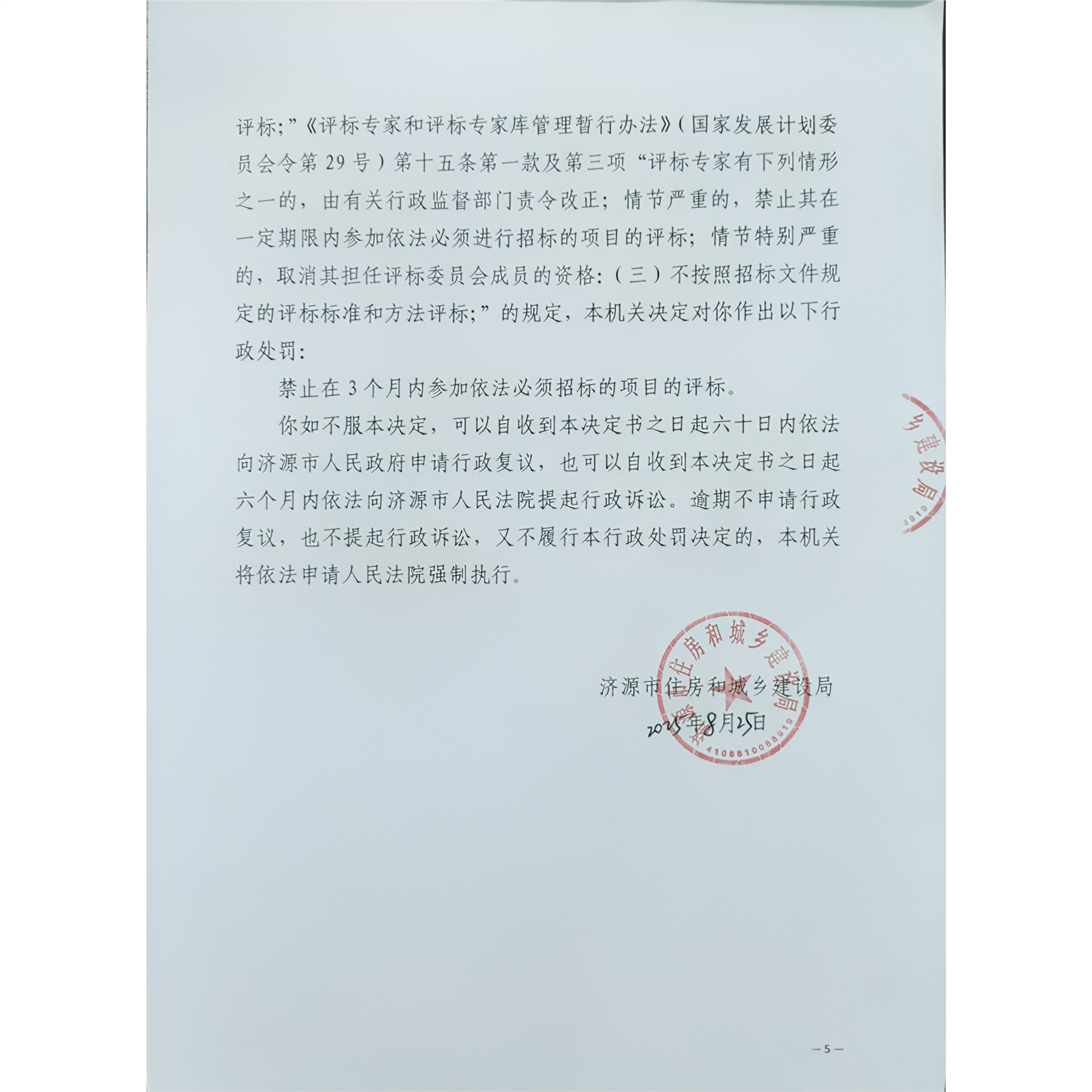 济源市住房和城乡建设局行政处罚决定书济建管市监罚决字(2025)第008号