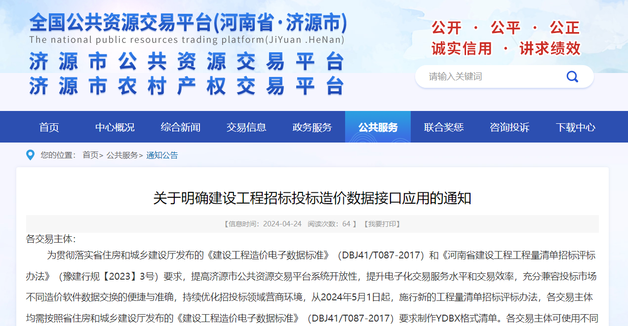 4月24日,交易中心发布了《关于明确建设工程招标投标造价数据接口应用的通知》,进一步帮助市场主体明确如何生成YDBX格式清单制作招标文件或投标文件,提升了中心电子化交易服务水平和交易效率,充分兼容投标市场不同造价软件数据交换的便捷与准确。
